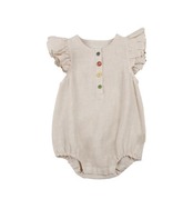 落ち着いたくすみカラーと柔らかな素材が魅力の、夏用ロンパースです。